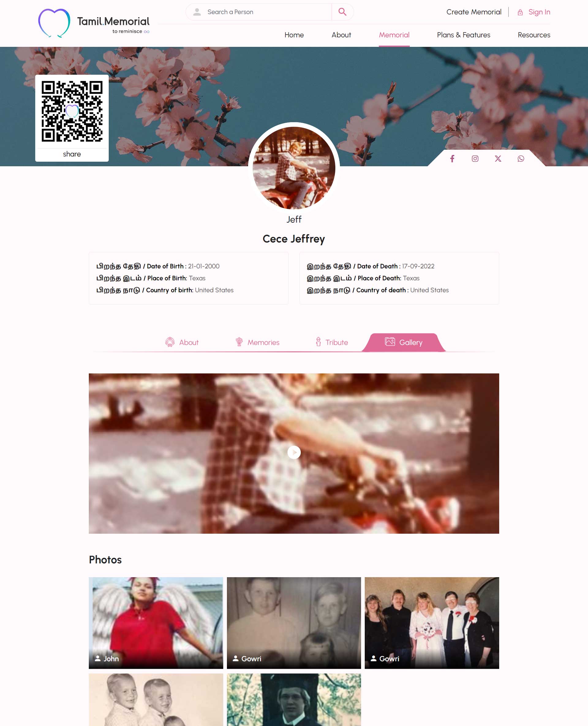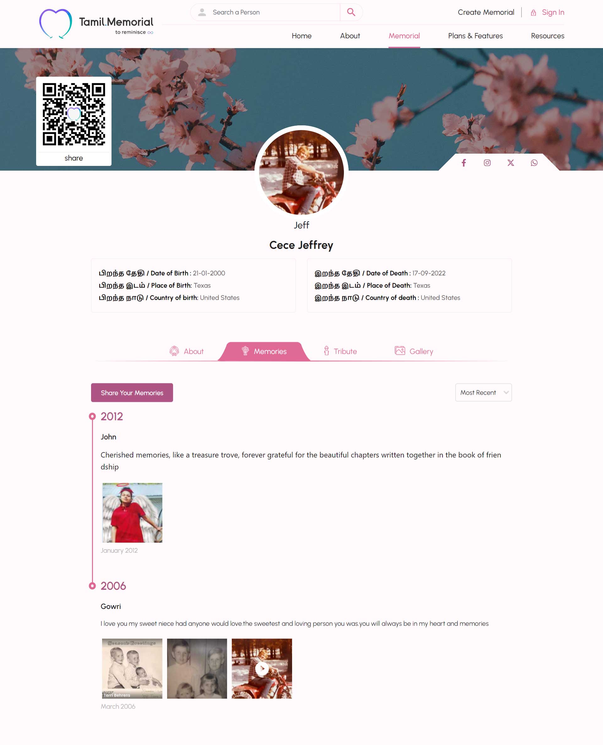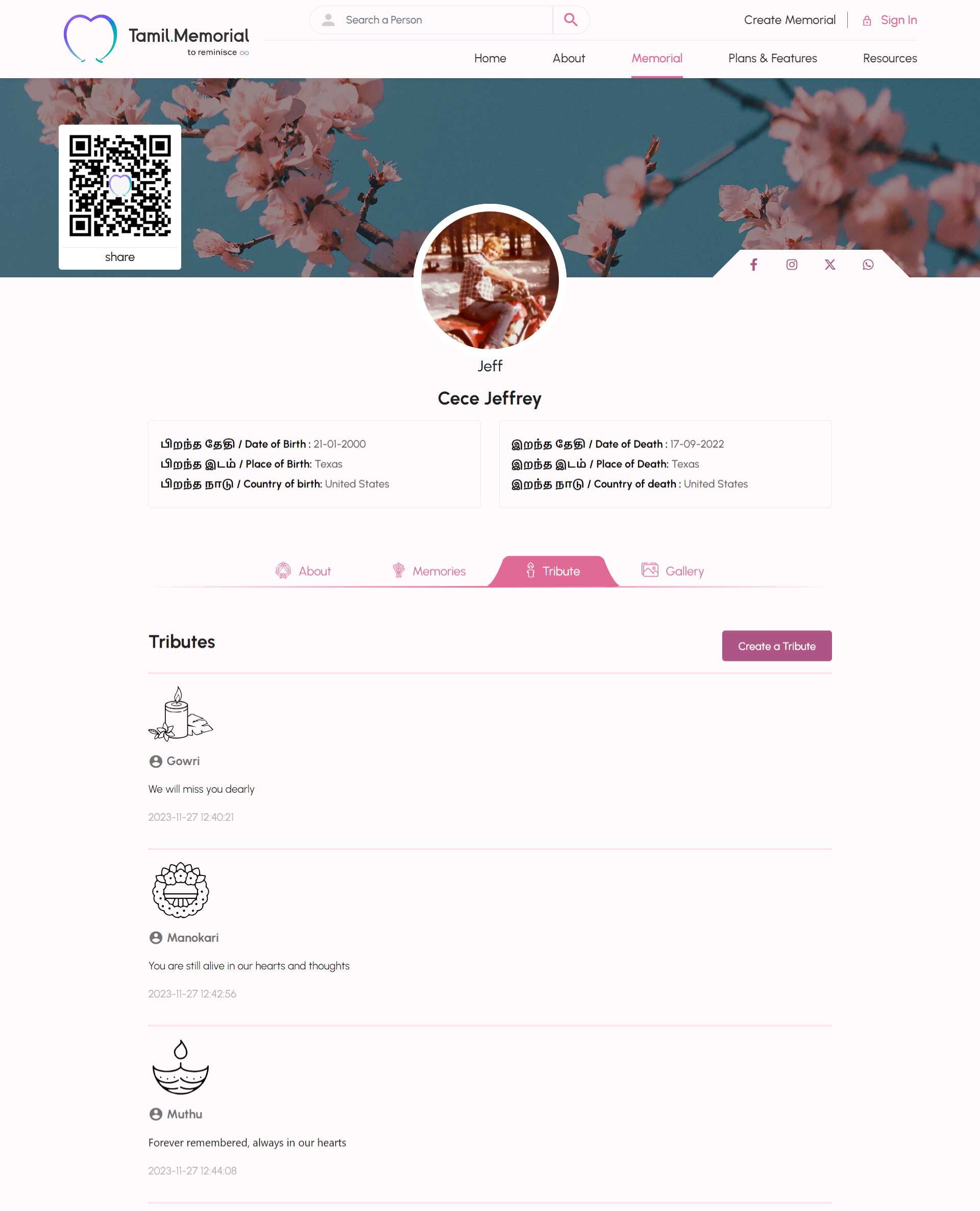 At Tamil Memorial, you and your family members and friends can pay tribute to your special ones and share feelings,memories ,images and